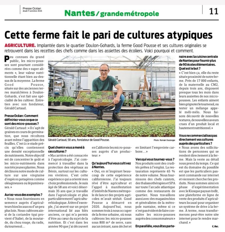 Nous cultivons des micro-pousses croquantes et savoureuses sur d’anciennes terres maraîchères au coeur de Nantes.